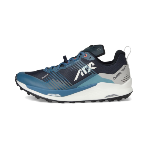 - Perfect for competitive, medium to long-distance trail running, the Lowa Madrix shoes are designed to meet the needs of elite trail runners who need a lightweight, cushioned, and responsive shoe for long runs and ultras. Their upper is made of a comfortable and highly breathable 5D Reptex fabric that combines a soft micro mesh textile with 5D polyurethane overlays in high-wear zones. The 3.0 Carbon Rebound Plate embedded in the Dynafoam midsole increases the power to ground, to help you move along the trail faster and with less fatigue, while the anatomical cuff design features seamless contact points and extra padding for all-day comfort and helps keep trail debris out. These lace-up sneakers are made of an EVA insole and polyester lining. They are built with a cushioned rocker-shaped Dynafoam midsole that offers ultra-high rebound and cushioning. The one-piece collar and asymmetrical tongue reduce friction. These running shoes are a perfect choice for your outdoor rides and training sessions.