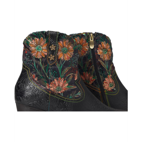 - Embrace the perfect fusion of Western charm and artistic flair with this stunning L'Artiste by Spring Step Brydie ankle boot. Crafted with a luxurious leather combo upper, it features intricate floral embroidery and embossed detailing for a truly unique look. The sleek, snip toe and faux stacked heel give it a classic cowgirl-inspired edge, while the zippered side closure ensures wearable ease. Designed for all-day comfort, this boot offers a cushioned insole and sturdy construction, making it a must-have for trendsetters who love a bold, chic statement.