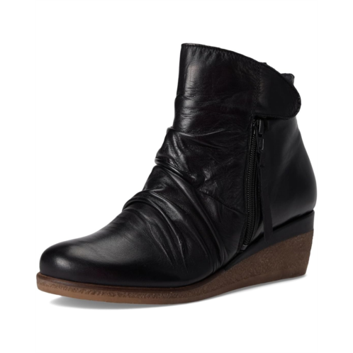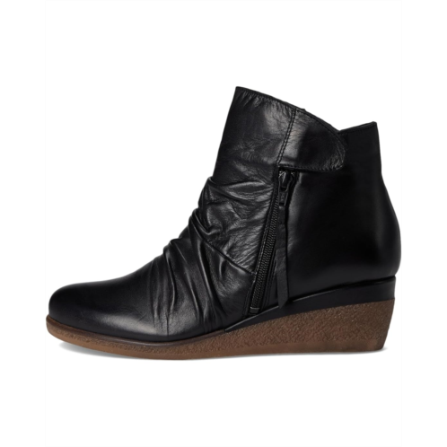 - The Miz Mooz Mayleen Boots feature a ruched design and side zipper adorned with a tassel that adds movement and flair with every step. The elevated wedge heel offers subtle lift without sacrificing stability, while the microfiber lining ensures a cozy fit.