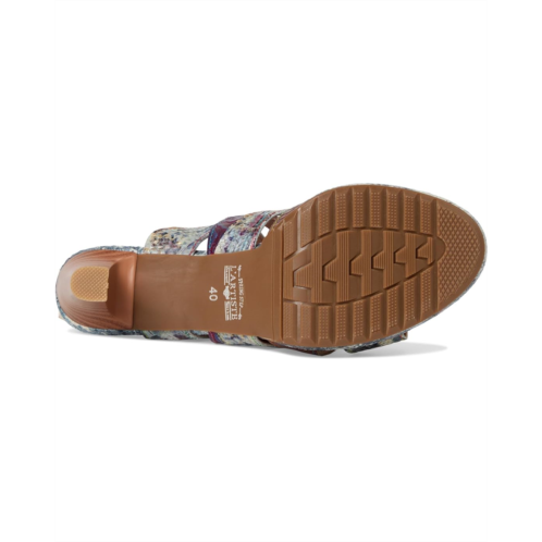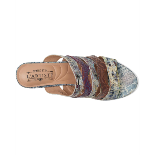 - The L'Artiste by Spring Step Aurielle sandals features open-cut stacked combinations of printed and embossed metallic leather on the upper, a plush textile footbed, and a platform that compliments the colors on the upper.