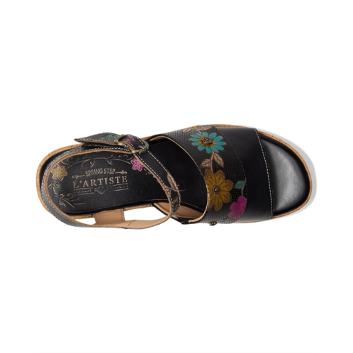 - Slip into the L'Artiste by Spring Step Halena platform sandal and let your style shine, whether you're dressing up for a special occasion or simply enjoying a day in the sun. With its attention to detail and comfortable cork sole, the HALENA will have you feeling confident and comfortable from morning to night. Crafted from leather upper, faux leather lining, and insole, this pair of sandals features open round toe, block heel, adjustable hook-and-loop ankle strap and inside stretch gore on the toe strap for a customized fit, and hand painted flowers on the footbed for special attention to detail.