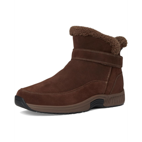 - The Orthofeet Bliss shoes are hands-free, lightweight, casual orthopedic walking boots that provide full support and cushion all day long, while allowing extra room in the toe area, and a comfortable fit. These mid-calf boots feature Ortho-Cushion technology, which helps relieve foot and heel pain, ideal for those with sensitive, tired feet. Their soft, padded nylon inner lining with no overlays eliminates irritation, while the premium orthotic EVA insole with anatomical arch support re-aligns the foot and entire body posture. The stretchable suede upper with an adjustable hook-and-loop strap allows for fit flexibility. These pull-on boots have a wide toe box design that alleviates pressure on swollen feet, bunions, and hammertoes. Orthotic and AFO-friendly, these flat boots keep your feet comfortable and protected all day.