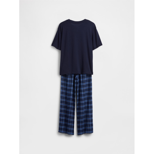 - Soft knit jersey oversized pajama t-shirt and classic brushed flannel pajama pants sleep set.