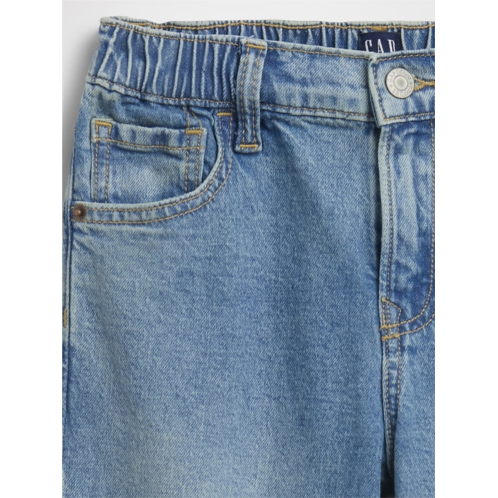 - Button at elasticized hybrid waist (sizes 4-8 have hook & bar closure beneath faux snap for easy on and off), zip fly.