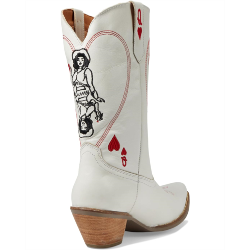 - Let your steps win the world wearing Dingo Queen A Hearts boots. Crafted from canvas upper, the boots feature unique and stately stitching throughout the shaft. A leather lining, cushion comfort insole, and mid-calf design makes comfortable stride. It has pointy toe, shaft pull-tab, and cowboy heel to let you step iinto royalty.