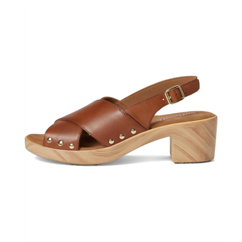 - Embrace the ease wearing the SoftWalk Florence. Crafted from microfiber upper, leather lining, and footbed, this pair of sandals features open round toe, clog sole with a cross strap sling design that is adorned with chic stud details. The sole has the look of a wooden clog but is actually a lightweight polyurethane sole with rubber insert on the outsole for sure footing. The cushioned footbed is lined in soft suede leather and has arch support.