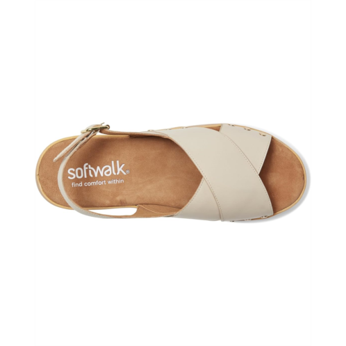 - Embrace the ease wearing the SoftWalk Florence. Crafted from microfiber upper, leather lining, and footbed, this pair of sandals features open round toe, clog sole with a cross strap sling design that is adorned with chic stud details. The sole has the look of a wooden clog but is actually a lightweight polyurethane sole with rubber insert on the outsole for sure footing. The cushioned footbed is lined in soft suede leather and has arch support.