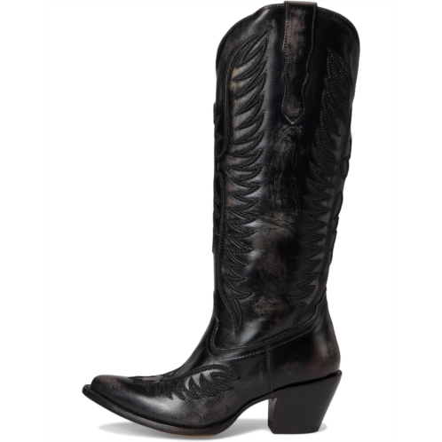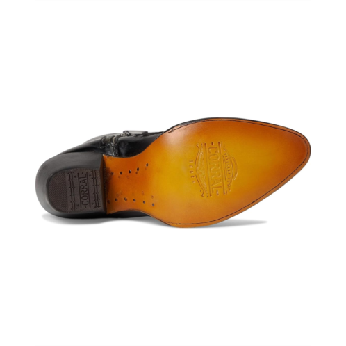 - The Corral Boots A4792 are calf-high boots with lady black/bone embroidery and cowboy fashion heels. These heeled boots are made of a leather upper, insole, and lining. The zippered side closure offers easy wear. Make your style statement with these leather boots.