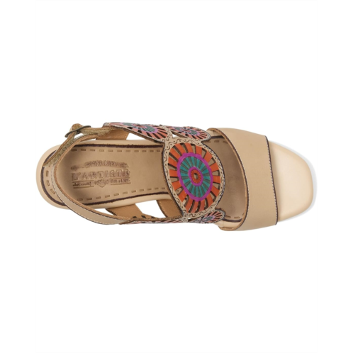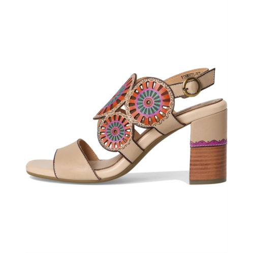 - Designed with laser-cut sunburst-inspired cutout designs that are hand-painted for a unique look, the L'Artiste by Spring Step Pinwheel sandals add a sophisticated look to your outfits. The leather construction of these sandals offers durability. Comfortable to wear for long hours, these heeled sandals work with most styles and outfits. Make your fashion statement by wearing these block-heel sandals.