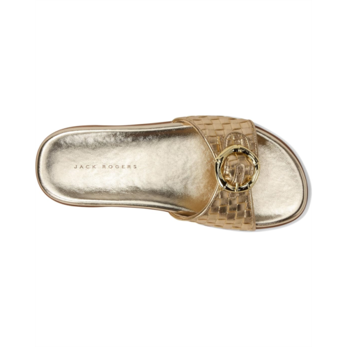 - The Jack Rogers Essex Slide - Embossed Metallic Leather sandals offer natural flexibility with their smart design and engineering that mimic the foot's natural motion. Move smoothly from heel to toe with less fatigue with these slide sandals. Lightweight, the components and compounds are carefully considered to weigh less, so you can go further. These flat sandals are made of an EVA insole and textile lining. The leather upper is styled with an adjustable buckle closure. Their proprietary Incredifoam absorbs shock and provides rebound with each step. These leather sandals propel you forward all day.