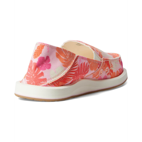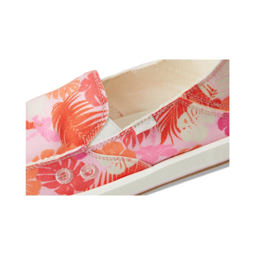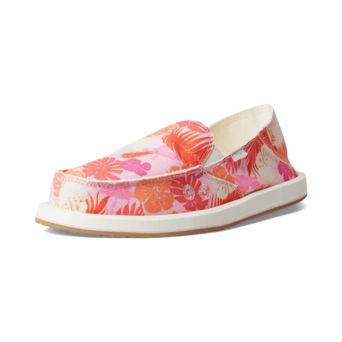 - Add color to your wardrobe by choosing the Sanuk Donna Tropics shoes. A tropical floral palm print polyester and cotton blend upper on a contoured high rebound Soft Top footbed with germicidal additive for barefoot-friendly wear. Happy U tread sponge rubber outsole is made with 53% recycled material. All cotton used is responsibly sourced.
