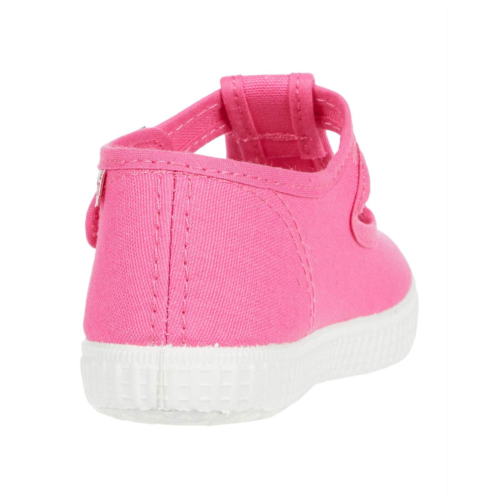 - Canvas upper in a T-strap silhouette with a branded tag decorating the side.