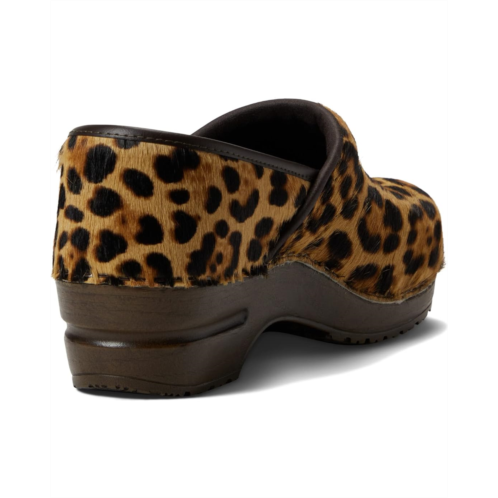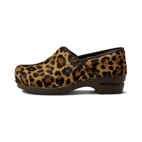 - Slip on in the comfy and luxurious style of Sanita Lyon clogs with leopard print.