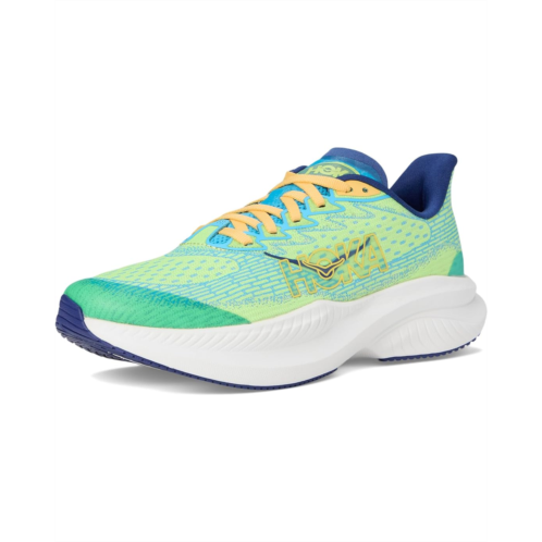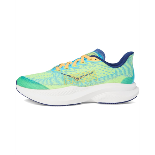 - Give your steps a reason to move wearing the Hoka Kids Mach 6 shoes. They feature textile upper with synthetic overlays. A textile lining and removable EVA footbed ensure optimal freshness by ensuring breathability. It has EVA midsole, rounded toe, and lace-closure. A padded collar provides support to the ankles while you walk outdoors.
