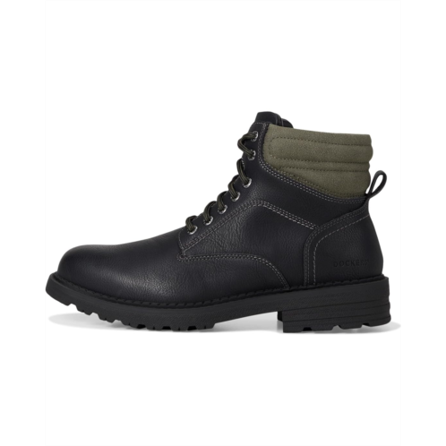 - Step into bold style and urban-ready vibes donning the Dockers Telford Boot! Engineered for the modern man, these ankle-high boots combine rugged durability with refined sophistication. The faux leather upper and outsole create a polished, resilient look, while the EVA insole cushions every step for all-day comfort. Polyester lining ensures breathable wear, and the lace-up closure with padded collar and tongue provides a secure, cozy fit. Designed to tackle city streets or weekend adventures, the block heel adds subtle height without sacrificing stability. Slip in and out effortlessly with the convenient inside zipper, and stay worry-free with the Stain Defender treatment keeping your boots fresh and dry.
