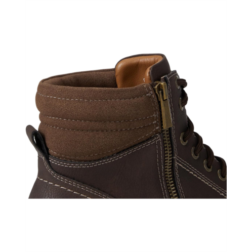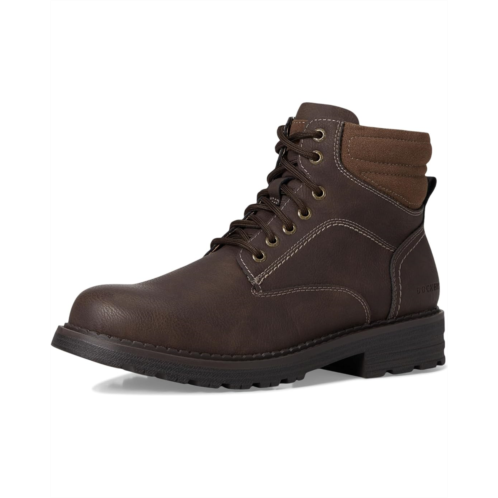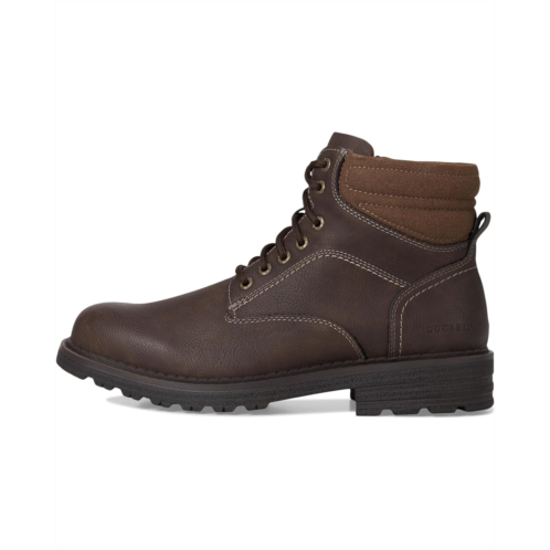 - Step into bold style and urban-ready vibes donning the Dockers Telford Boot! Engineered for the modern man, these ankle-high boots combine rugged durability with refined sophistication. The faux leather upper and outsole create a polished, resilient look, while the EVA insole cushions every step for all-day comfort. Polyester lining ensures breathable wear, and the lace-up closure with padded collar and tongue provides a secure, cozy fit. Designed to tackle city streets or weekend adventures, the block heel adds subtle height without sacrificing stability. Slip in and out effortlessly with the convenient inside zipper, and stay worry-free with the Stain Defender treatment keeping your boots fresh and dry.
