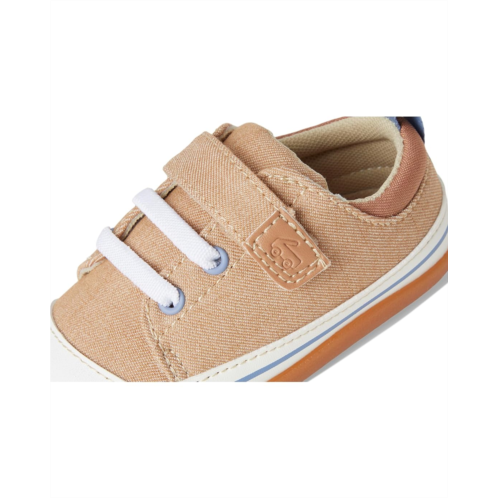 - Cotton denim upper with recycled polyester and faux-leather details, plus rubberized toe cap to protect little toes.