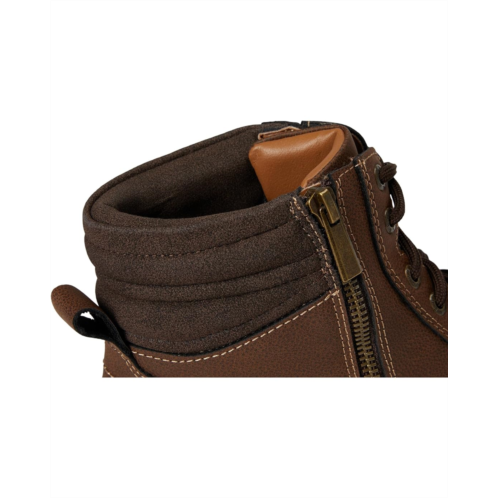 - Tackle your day with confidence in the Dockers Thomas Boot, designed to combine practicality with style. Made with durable synthetic leather uppers, these boots are ready to withstand whatever elements come your way. Treated with Stain Defender for water and stain resistance, they're as easy to care for as they are reliable. The Supreme Comfort EVA footbed features a massaging, cushioned footbed texture, providing all-day comfort and support. The moisture-wicking linings in these men's shoes keep your feet dry, even during the most active moments. Finished with a rugged TPR outsole, these Dockers boots ensure stability and traction on any terrain. With convenient side zippers for easy on-and-off wear and padded collars and tongues for extra cursing, these men's boots are ready for everything from urban exploration to weekend adventures, offering both rugged casual style and high-quality performance in one versatile package.