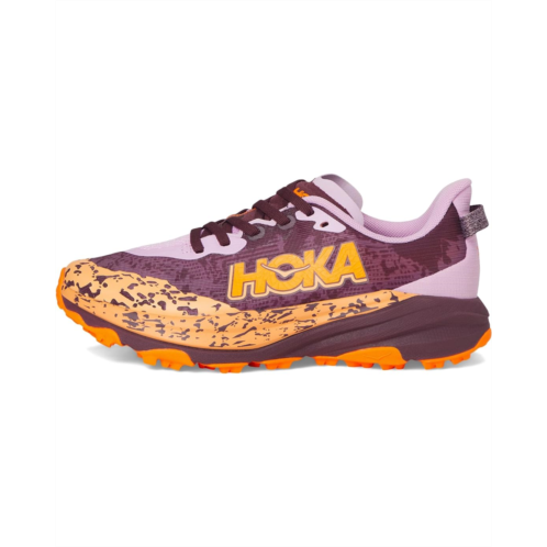 - Built off the blueprints of the Hoka Original Trail Icon, the Hoka Kids Speedgoat 6 shoes are lighter than ever with a 50% sugarcane EVA midsole and feature deeper durable 4.5mm lugs for trail traction. The polyester upper of these sneakers is designed with a lace-up closure for a secure fit. Offering all-day comfort, the EVA insole and textile lining provide added comfort. Colorful and comfortable, these lace-up sneakers are a must-have for your kid's footwear collection.