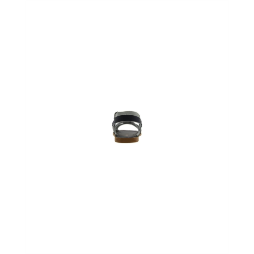 - Open, round-toe silhouette features woven detailing at the vamp and an adjustable rust-free brass buckle closure.
