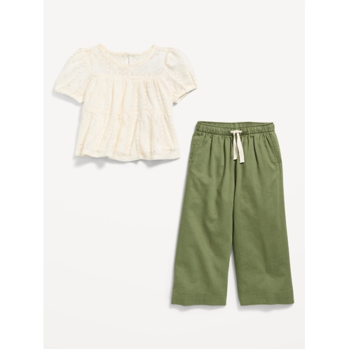 OldNavy Short-Sleeve Lace Top and Chambray Pants Set for Toddler Girls
