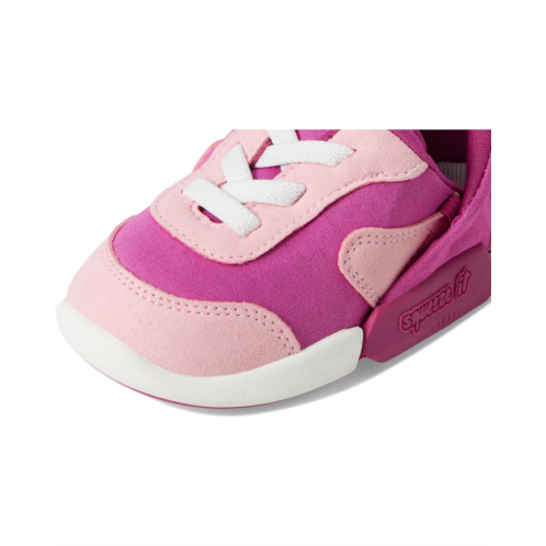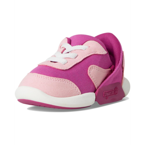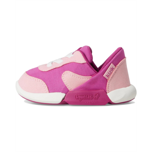 - Meet the KIZIK Kids Squeeze It - Hands-free shoes for infants and toddlers. Simply squeeze the sides, then slide them on. These sneakers feature Squeeze it technology, which is a patented, dynamic, easy-on technology featuring flexible, step-in heels that enhance the footwear experience for both parents and children and let them step in, hands-free. With elastic laces, this no-tie design offers effortless slip-on convenience, while durable materials enhance longevity. They are made of a leather upper, polyester lining, and a removable EVA insole. Offering moderate cushioning, these lace-up sneakers make a great addition to your kid's footwear collection.