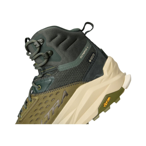 - The Altra Olympus 6 Hike Mid Gtx is a lightweight, waterproof hiker that practically screams 'Let's go all day!' With an all-new waterproof polyester lining, leather upper, EVA insole, and grippy Vibram Megagrip outsole, get out in any condition. The updated mid-top sneaker features GORE-TEX Invisible Fit with protection that won't weigh you down. A constructed collar is designed to ensure a stable fit and ankle support on technical terrain. Plus, the lace-up closure ensures a secure fit on the go and the tongue & ankle pull tab allow easy donning/doffing.