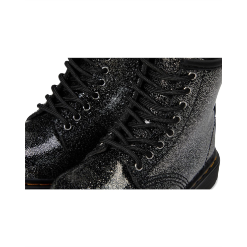 - The Dr. Marten's Kid's Collection 1460 I boots are a glitter-infused take on the brand's iconic 8-eye silhouette, scaled down for little rebels. Built from Nebula Glitter-coated leather upper, they shimmer with a high-shine finish and sparkle effect that's both playful and bold. Designed for easy wear, they feature an internal side zipper for quick on-and-off access and a padded collar for comfort. Finished with signature stitching, and a scripted heel loop, these high-top boots deliver classic Dr. Martens attitude in a kid-friendly package.