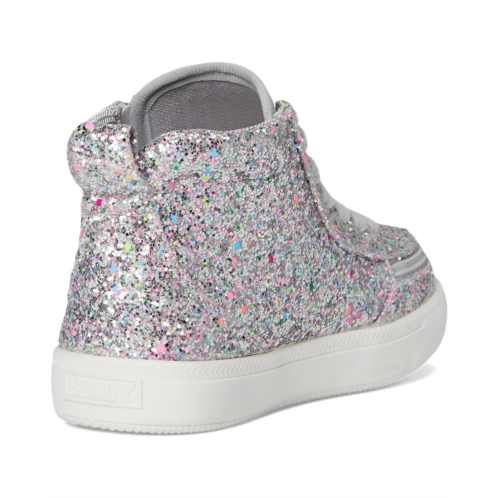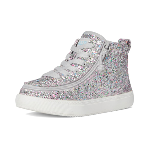 - The BILLY Footwear Kids Glitter BILLY Classic D|R II High sneaker features a full-wrap zipper closure for easy step-in access and functional laces for adjustable fit. The rubber outsole is designed to withstand toe and heel striking, while glitter finishes add playful sparkle.