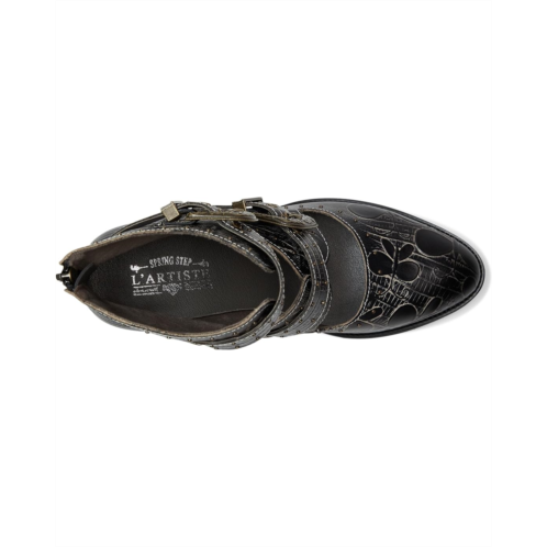 - Step into a blend of elegance and creativity choosing the L'Artiste by Spring Step Notched-nature boots! Crafted with embossed butterflies, textured leather upper, and luxurious leather lining, these boots are as comfortable as they are stylish. The cushioned insole ensures all-day comfort, while the antiqued buckles and dainty studs add a touch of sophistication to the stacked block heel.