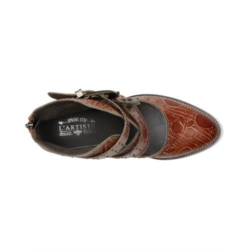 - Step into a blend of elegance and creativity choosing the L'Artiste by Spring Step Notched-nature boots! Crafted with embossed butterflies, textured leather upper, and luxurious leather lining, these boots are as comfortable as they are stylish. The cushioned insole ensures all-day comfort, while the antiqued buckles and dainty studs add a touch of sophistication to the stacked block heel.