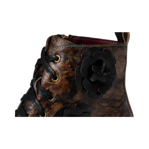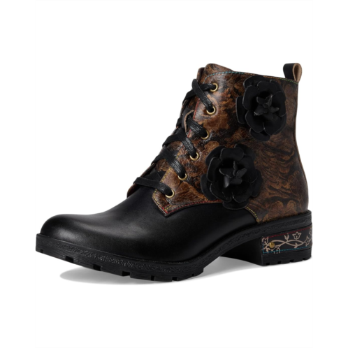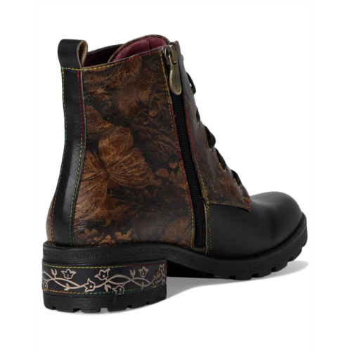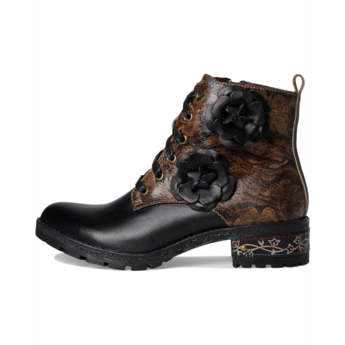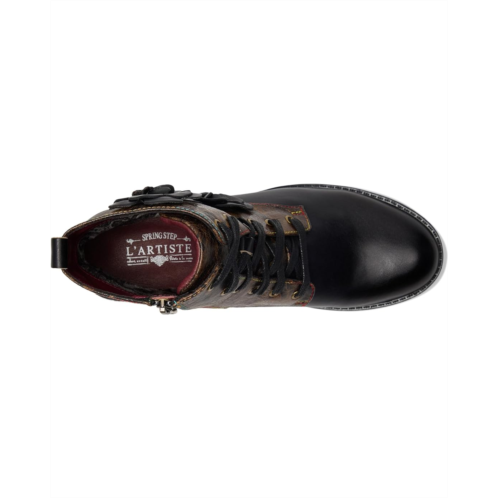 - The L'Artiste by Spring Step Martinela boot showcases delicate floral appliques, signature rainbow topstitching, and etched heel details that lend a whimsical charm. The chunky stacked heel offers subtle lift, while the microsuede and velvet lining and cushioned faux leather insole ensure all-day comfort.