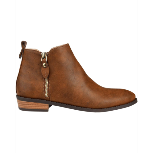 - The Ellis Bootie may be your go-to for the season. This cute bootie showcases a faux leather upper, pull-on construction with side zip closure, almond-toe silhouette, and pinhole detail at the heel.