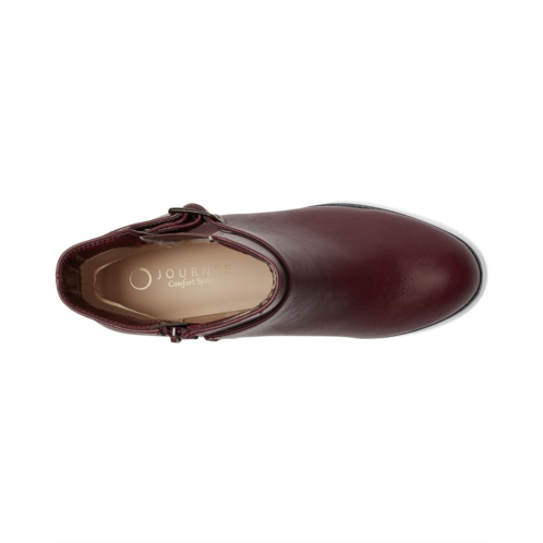 - The Journee Collection Devina buckle ankle boot features a sleek almond toe and stylish buckle strappy detail that adds an edgy touch to any outfit. Made of polyurethane upper with a block heel, it offers both style and stability for all-day wear. With a 4 mm Journee Comfort System Insole, this boot provides superior cushioning, making it perfect for dressing up or keeping casual.