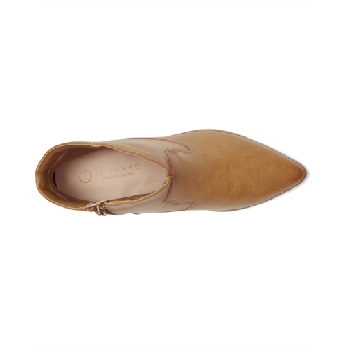 - Western flair, redefined in the Journee Collection Taliah. Designed with a sleek ankle-high silhouette and crafted from smooth PU faux leather, this statement boot offers a polished look with a touch of rugged edge. The pointed toe and Cuban block heel add striking style, while the unique stitching details elevate its standout appeal. A convenient zippered side closure ensures easy wear, and the Journee Comfort System insole keeps you supported from day to night.