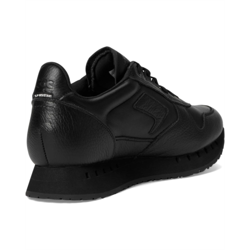 - Engineered for performance and inspired by heritage, the SAS 7Eventy6ix-Y Work Non-Slip Comfort Sneakers elevate the classic trainer for today's most demanding work environments. Built with water-resistant leather uppers and a certified slip-resistant rubber outsole (ASTM F2913-24/ASTM F3445-24-SRO), this sneaker delivers reliable traction and durability on slick surfaces. A moisture-wicking mesh lining helps maintain a fresh, dry feel throughout the day, while the removable memory foam footbed adds personalized comfort. Designed with SAS's signature three-point support system, it ensures a secure fit while making it easy to slip on and off.