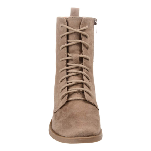 - The Journee Collection Vienna Boot features a faux suede leather upper, lace-up with inner zip closure, round-toe silhouette, and stacked block heel.