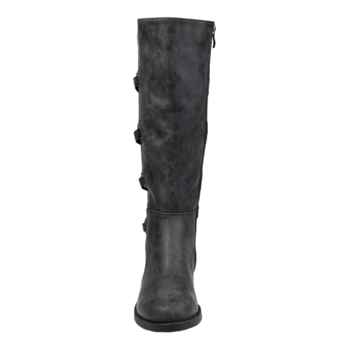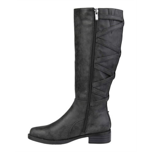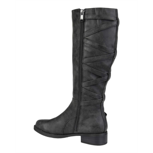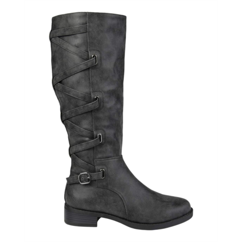 - If you love a good riding boot, then you'll love the Carly boot by Journee Collection. This boot has such a different look to it with the zigzag lace detail. It's so quirky and can easily spice up any winter outfit. This boot also features an almond toe shape and a distressed coloring.