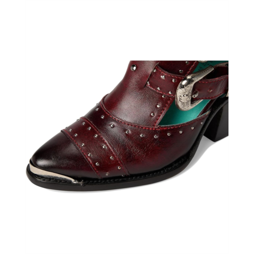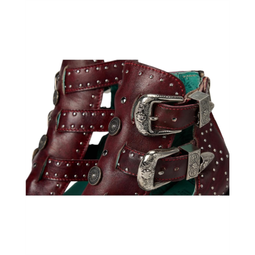 - The Corral Z2029 boot boasts an edgy, fashion-forward detailing. Crafted in rich leather upper, it features multiple buckled strap accents and metal stud embellishments that wrap around a pointed toe silhouette. The design is elevated by a classic cowboy heel, offering a confident stance and timeless appeal.