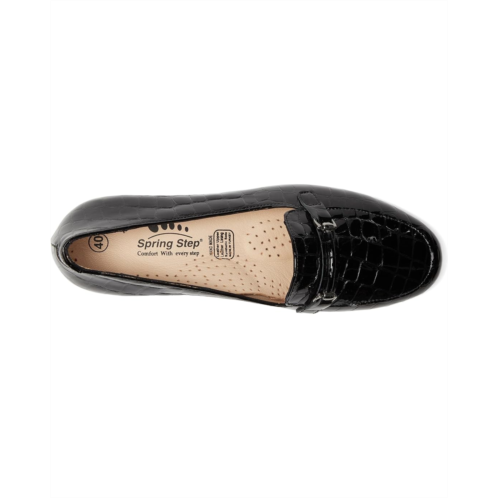 - Introducing the Spring Step Enda Croco-Embossed Leather Loafer Pumps, your new go-to for polished perfection. Crafted with a glossy croco-patterned leather upper, lining, and insole, these shoes radiate timeless style with a modern twist. The refined loafer silhouette is elevated by a chic metallic bit detail, making it the perfect partner for tailored workwear or sleek evening ensembles. Designed with your comfort in mind, the low block heel and supportive cushioned insole provide lasting ease and superior arch support, so you can stay confident and comfortable from day to night. The flexible TPU outsole ensures durability and smooth movement, while the pull-on design keeps them effortlessly convenient.