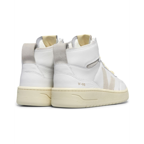 - Perfect to pair with your casual outfits and styles, the VEJA V-95 shoes are a high-top version of the V-90 sneakers. The leather upper of these sneakers features strap details and a lace-up closure for a secure fit. These lace-up sneakers are made of a rubber insole and polyester lining. Walk with style wearing these leather sneakers.