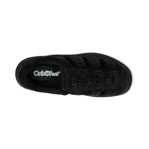- These lightweight, athletic Orthofeet Saturn sandals provide full support and cushioning all day long, while allowing extra room in the toe area and a comfortable fit. They feature Ortho-Cushion technology, which helps relieve foot and heel pain, ideal for those with sensitive, tired feet. The stretchable leather upper with a dual no-tie bungee lace closure system allows for fit flexibility. Their soft, padded nylon inner lining with no overlays eliminates irritation, while the premium orthotic EVA insole with anatomical arch support re-aligns the foot and entire body posture. Featuring a wide toe box design that alleviates pressure on swollen feet, bunions, and hammertoes, these orthopedic walking sandals are ideal for everyday wear.