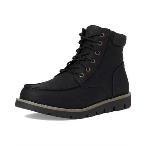 - Step into unstoppable style wearing the Dockers Davis Boot. Designed with a sleek faux leather upper and classic moc toe, these ankle-high boots deliver a versatile look that transitions seamlessly from city streets to weekend escapes. The two-tone TPR rubber outsole not only adds eye-catching flair but also ensures steady grip and superior traction on any surface. Inside, the Supreme Comfort EVA footbed with its innovative massaging texture cushions every step, while the moisture-wicking sock cover keeps your feet cool and dry all day. Reinforced with applied welt construction for long-lasting wear, these lace-up boots balance casual strength with sophisticated appeal.