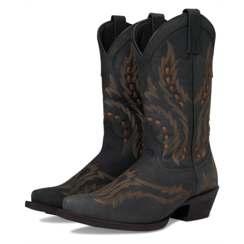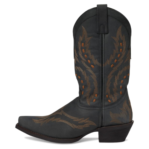 - Bold and stylish, the Laredo Ryker boots feature dark blue leather with intricate stitching and brown inlays. They are designed with an EVA upper, a leather upper, and fabric lining. With a cushion comfort EVA insole, Redline 3 rubber outsole, snip toe silhouette, and cowboy block heels, these heeled boots make a stylish addition to your wardrobe.