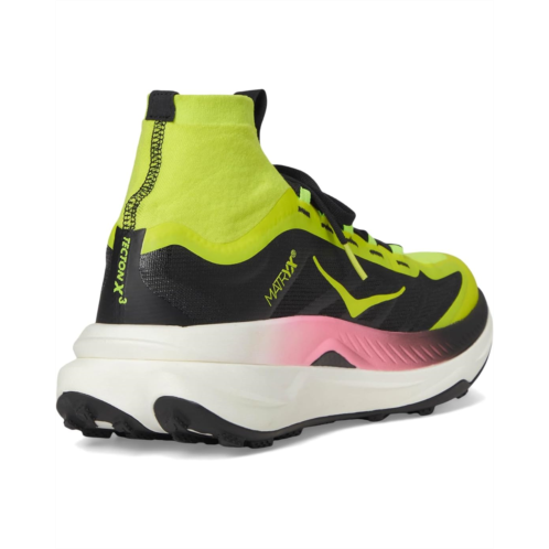 - Ready to propel you through gnarly terrain, the Tecton X 3 adds winglets to its carbon fiber plates for extra stability in just the right spots, and two layers of PEBA in the midsole-our lightest, most resilient compound. Redesigned lug shape and positioning on a Vibram Megagrip with Litebase outsole provide better traction, while a dynamic vamp allows feet to splay as the miles fly by. Topping it off, a knit collar extends up from the tongue like a gaiter to mitigate trail debris, and a lightweight Matryx textile upper makes this version more durable and trail-worthy than ever.