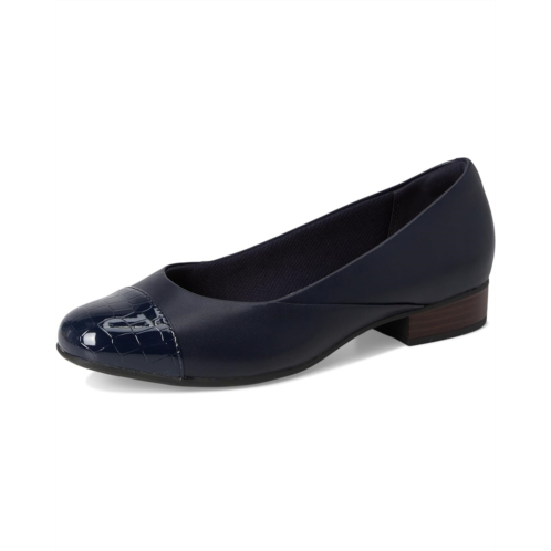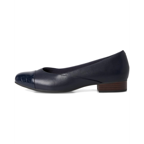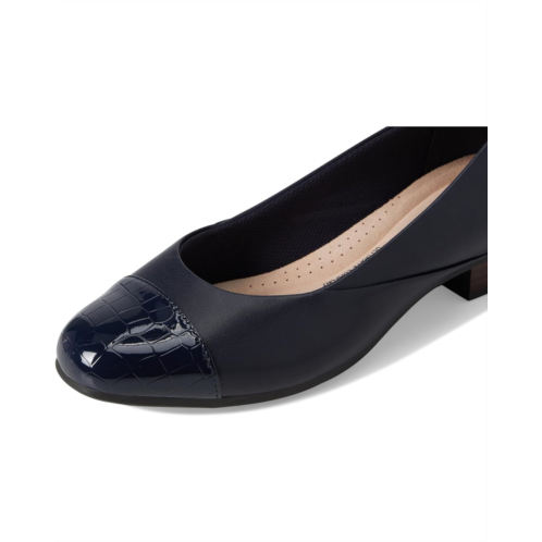 - A comfortable slip-on in premium leather, the Clarks Juliet Rise shoes are prepped for smart-casual styling, this season and the next. Their rubber insole and polyester lining provide added comfort. Crafted with a soft Ultimate Comfort footbed for lasting cushioning and a premium leather upper with toe-cap detailing, these heeled shoes are the perfect balance of effortless style and dependable cushioning.