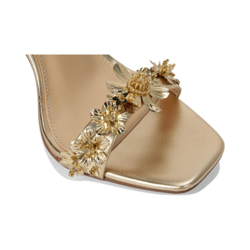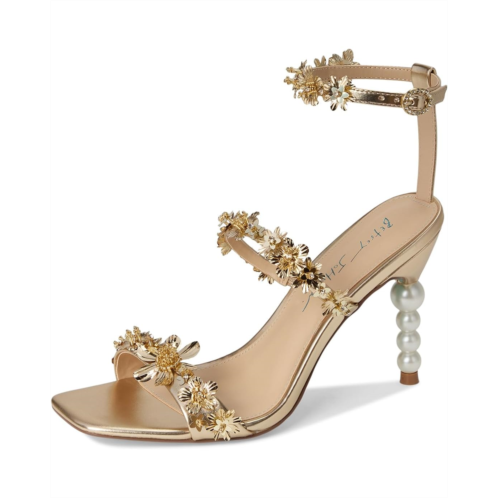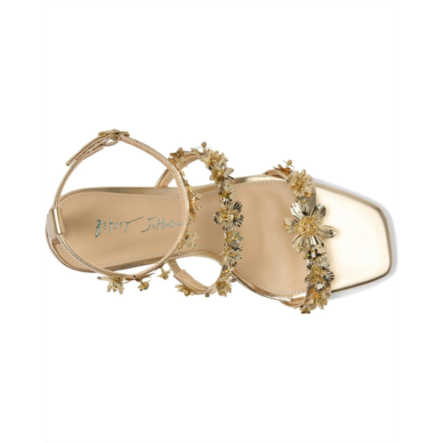 - The Blue by Betsey Johnson Lorra Heeled Sandals are both edgy and feminine. They are made of a faux leather insole and lining. The faux leather upper features flower straps and an ankle strap with an adjustable buckle closure. These chic sandals are the perfect touch to your outfit of the night.