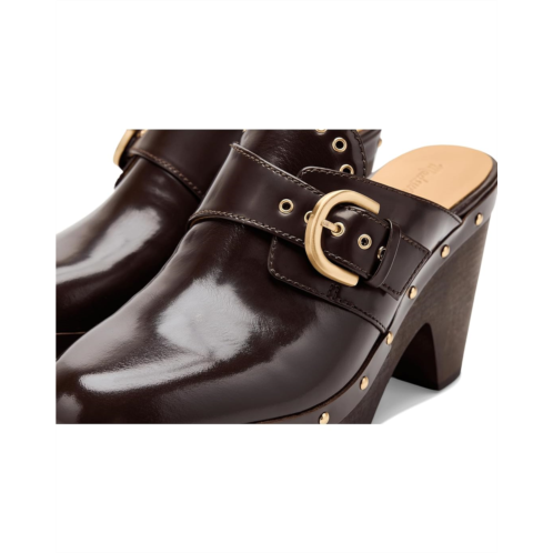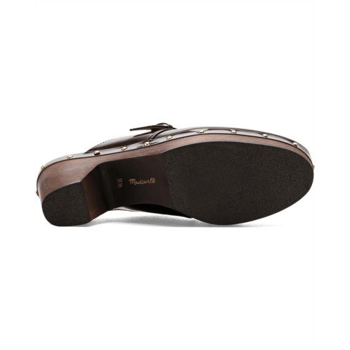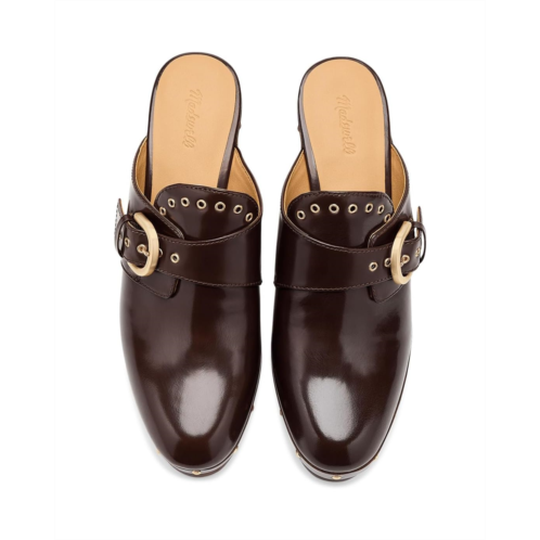 메이드웰 - Make a statement donning the Madewell Finneas Clog - Buckle. Featuring leather upper with goldtone studs and eyelets, these clogs are the perfect blend of chic and comfortable. The breathable leather lining and insole keep your feet feeling fresh, while the buckle strap adds a stylish touch. Complete with wooden platform heels, these clogs are a versatile option for any outfit.