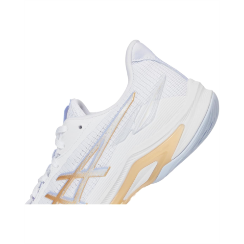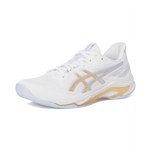 아식스 - The ASICS NETBURNER BALLISTIC FF 4 indoor shoe is designed to help increase speed and flexibility for multi-directional movements. SPEEDTRUSS is designed for quick accelerations and cutting motions, which allow you to move faster. The PRECISION SOLE design uses a 3D modeling application to generate the new outsole pattern, achieving best balance of flexibility, lightweight, and grip; combined with the X-GUIDANCE technology in the flex grooves to provide extra flexibility during multi-directional movements. Lastly, the FLYTEFOAM midsole helps provide improved comfort and faster movements. No-sew film covered mesh offers an improved lightweight fit, loop lacing system helps create an advanced fit, and lean back heel structure offers a comfortable ankle fit.