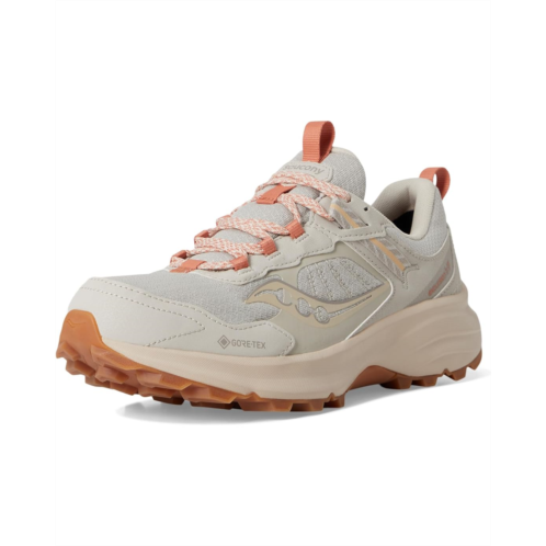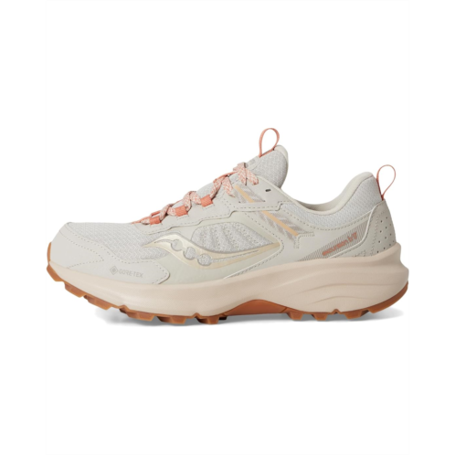 써코니 - With no boundaries in your journey, these Saucony Excursion TR17 GTX shoes keep you dry and ready for whatever the trail throws your way. The breathable mesh upper ensures comfort, while the unlined construction keeps things lightweight. Featuring a plush EVA insole for cushioning and a durable synthetic rubber outsole for traction, you'll stay grounded on any terrain. The lace-up closure provides a secure fit, and the closed toe design offers added protection.